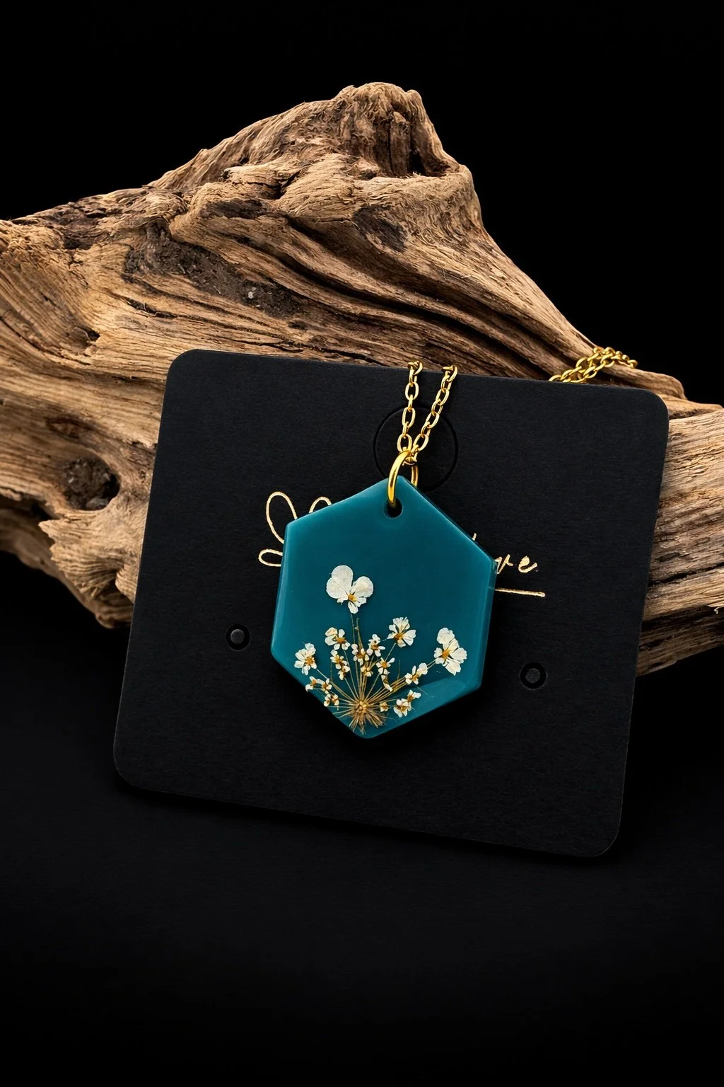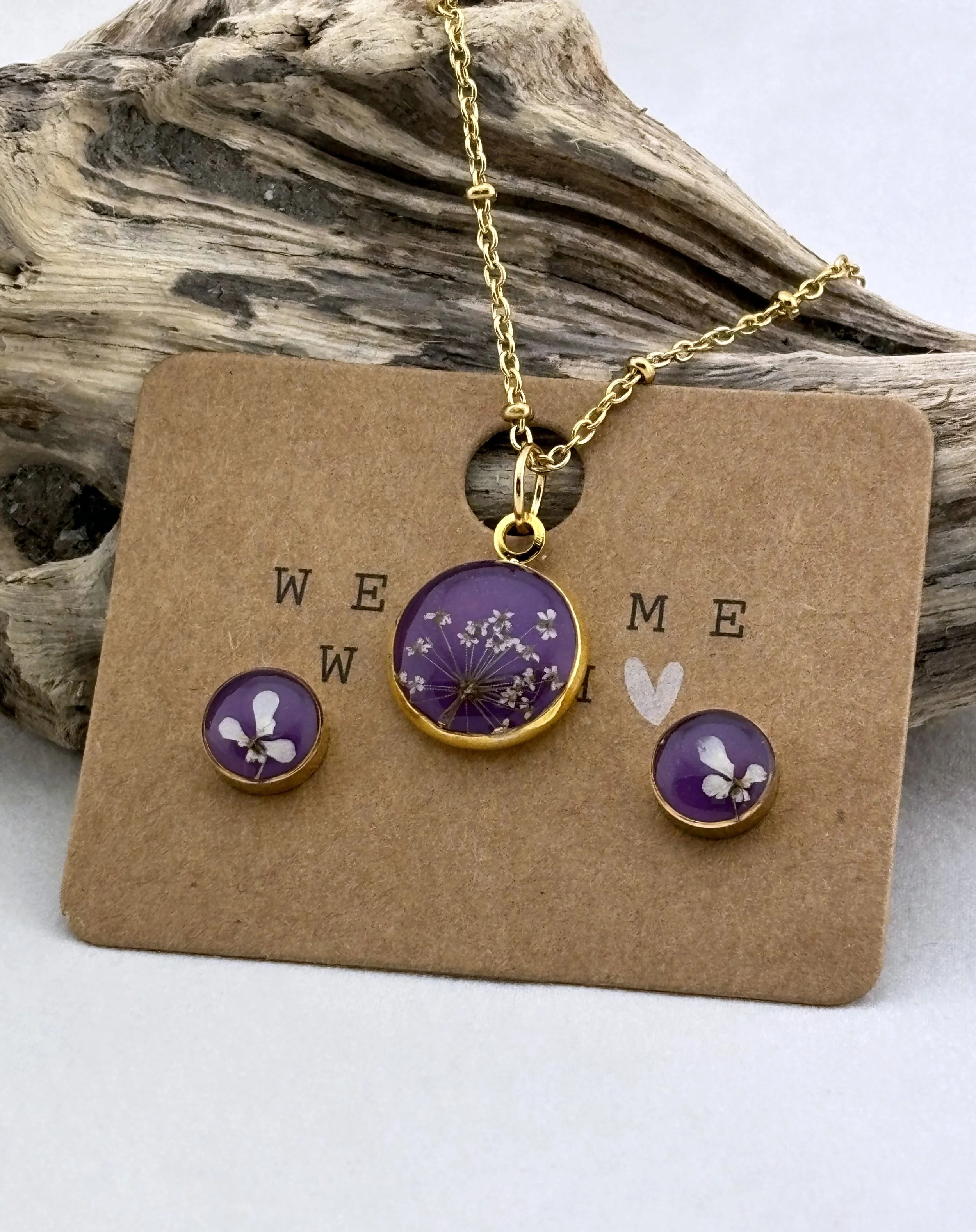 In meinen Arbeiten verewige ich Blüten, Blätter und andere Naturmaterialien oder erschaffe abstrakte Farbwelten, die an Galaxien erinnern. Jedes Schmuckstück entsteht in sorgfältiger Handarbeit und ist ein einzigartiges kleines Universum.