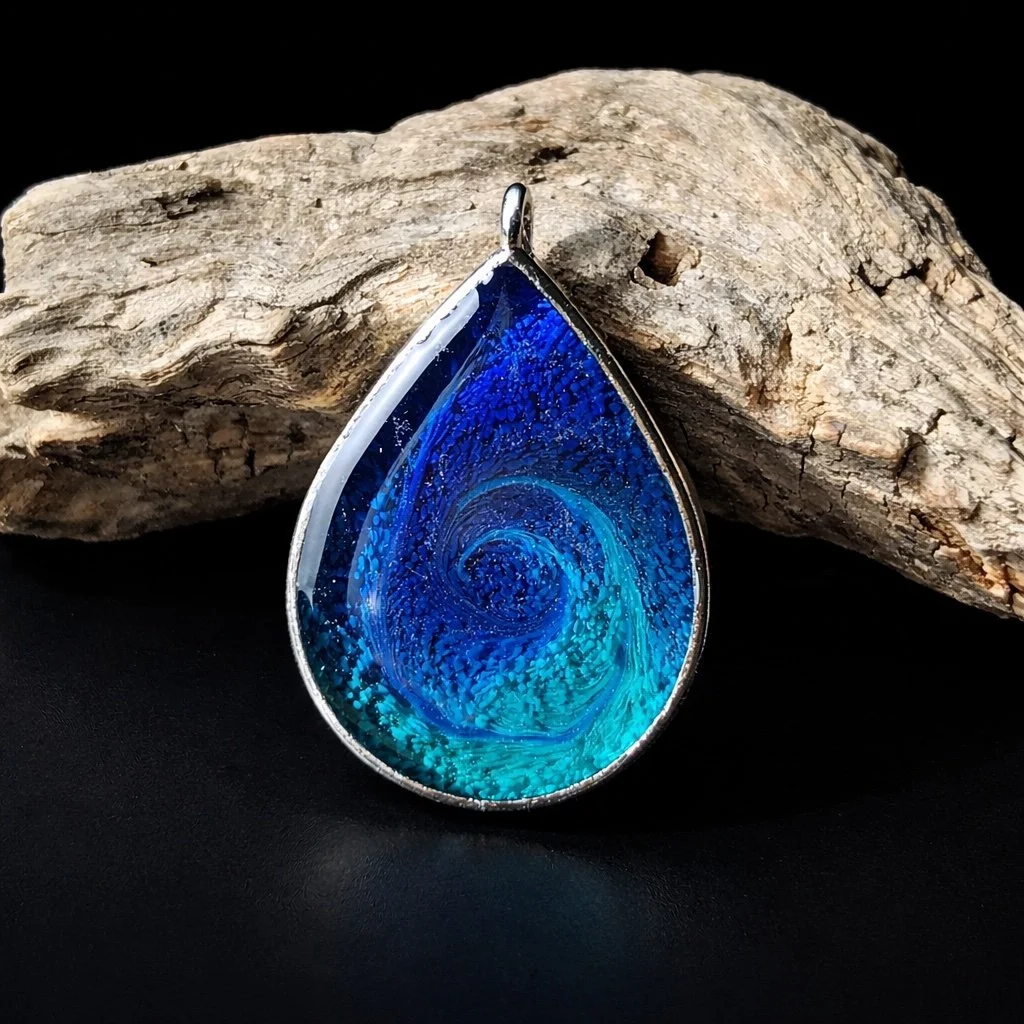 Für meine abstrakten und astroinspirierten Schmuckstücke habe ich mir im Laufe der Zeit verschiedene Techniken angeeignet. Eine meiner liebsten Methoden – vor allem für Galaxien und den Großteil der abstrakten Unikate – ist die sogenannte Resin-Petri-Dish-Technik.